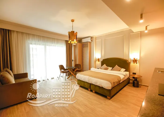 Roapart- Studio De Lux Cu Vedere Lac Si Mare La 2 Min De Plaja er en strand- ferielejlighed som ligger i Mamaia inden 12 minutters gårtur fra Aza Beach. Denne ferielejlighed tilbyder 9 værelser og en terrasse.
